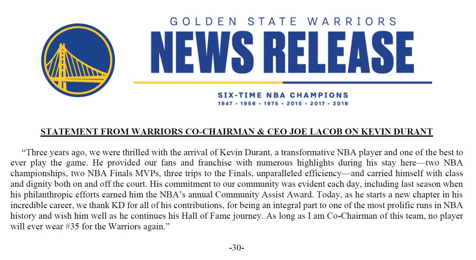 Thank You Golden State. In Tears Again. Golden State Retiring #35.